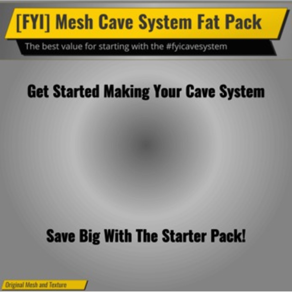 The #fyicavesystem is a system of mesh terrain, mesh cave tunnels, and mesh caves that lets you create your own unique cave system to fit your own needs.