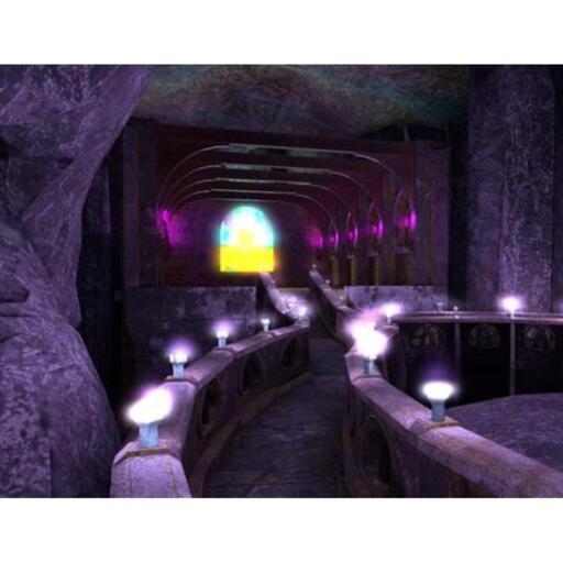 This cave was designed for a romantic get away or time to spend with a loved one. It features cool, loving colors throughout the cave. There's a narrow walkway that leads from the entrance of the cave to an interior castle area. There's also a platform along side the walkway.