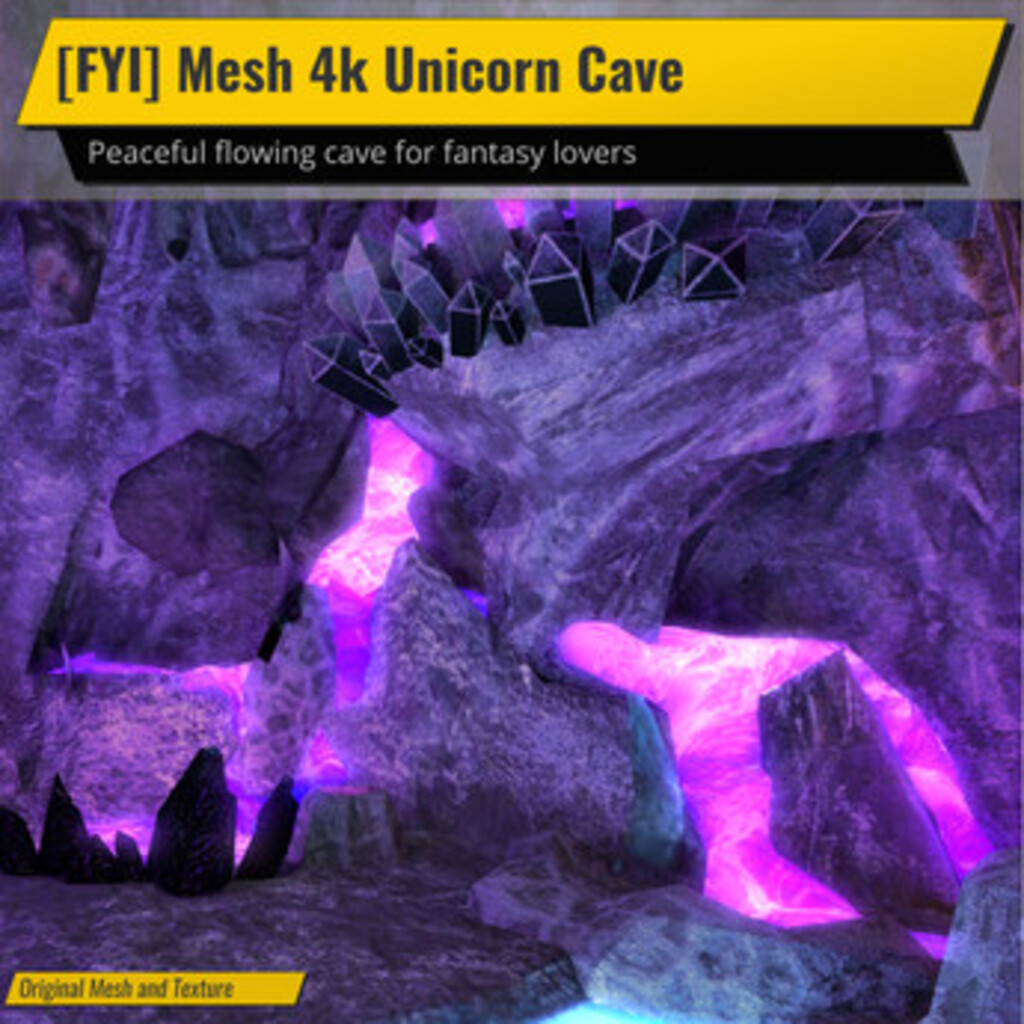 The [FYI] Mesh 4k Unicorn Cave uses the FYI 4k technology to bring you beautiful textures with significantly lower land impact!