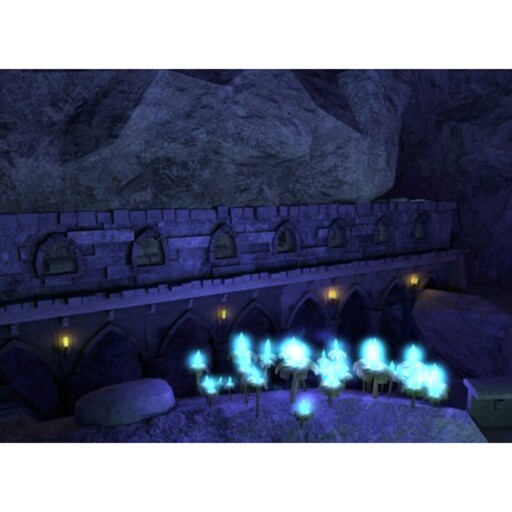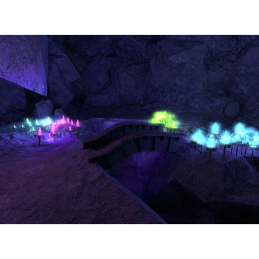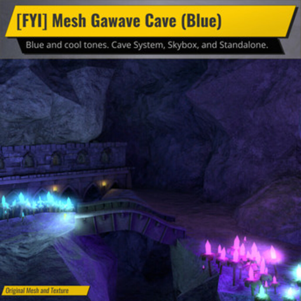 The Mesh Grawave Cave is a brand new mesh cave for Second Life. It features two long areas with an opening in between. There’s also a fairly nice sized castle structure that overlooks the entire cave. There are crystal flowers emitting a nice light throughout the cave. They have nice particles falling.