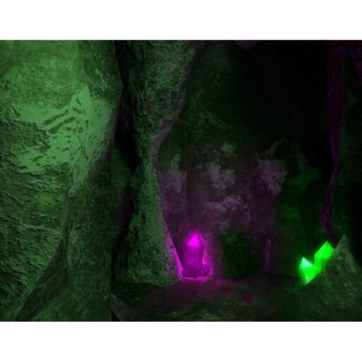 There is a large set of crystals on the ceiling, as well as several crystals on the sides, as well as some rock formations. The cave us underneath the mountain in that version, creating a subterranean grotto for you.