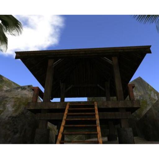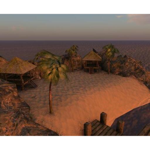 The Haoua Beach is meant to be rezzed out in the water, and then built up against with standard land. It features two beach huts you can use for whatever, some palm trees, and a small dock. The beach is surrounded by rocks.
