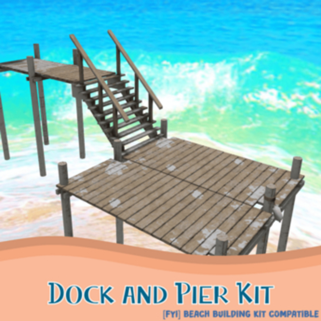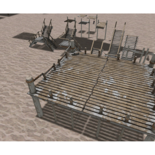 Several pieces with custom textures designed to let you make your own docks and piers. You can make walkways as well. Includes stairs, ramps, walkways, pieces for making platforms, and a big 16x16m dock platform.