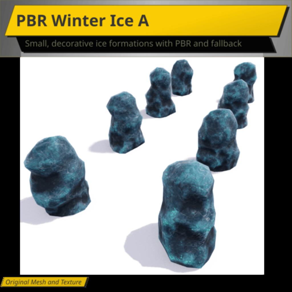 Mesh PBR winter ice formations. Decorate your winter scene. Ice materials shines and reacts like real ice.