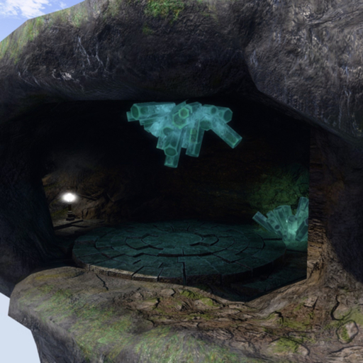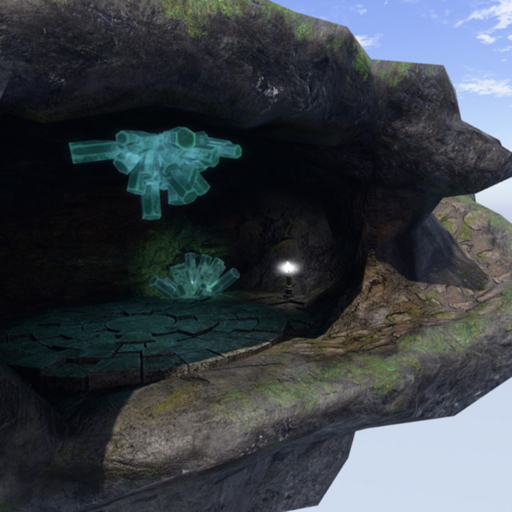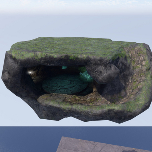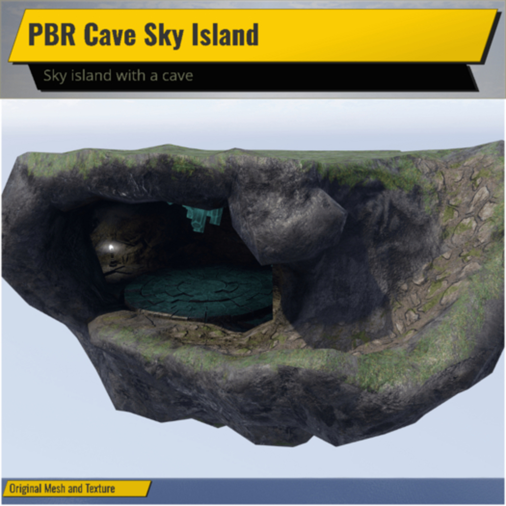 A sky island with a cave inside, you can walk down the ramp to get inside of the cave.