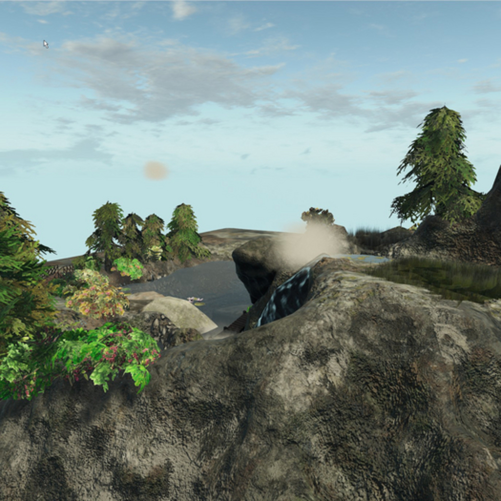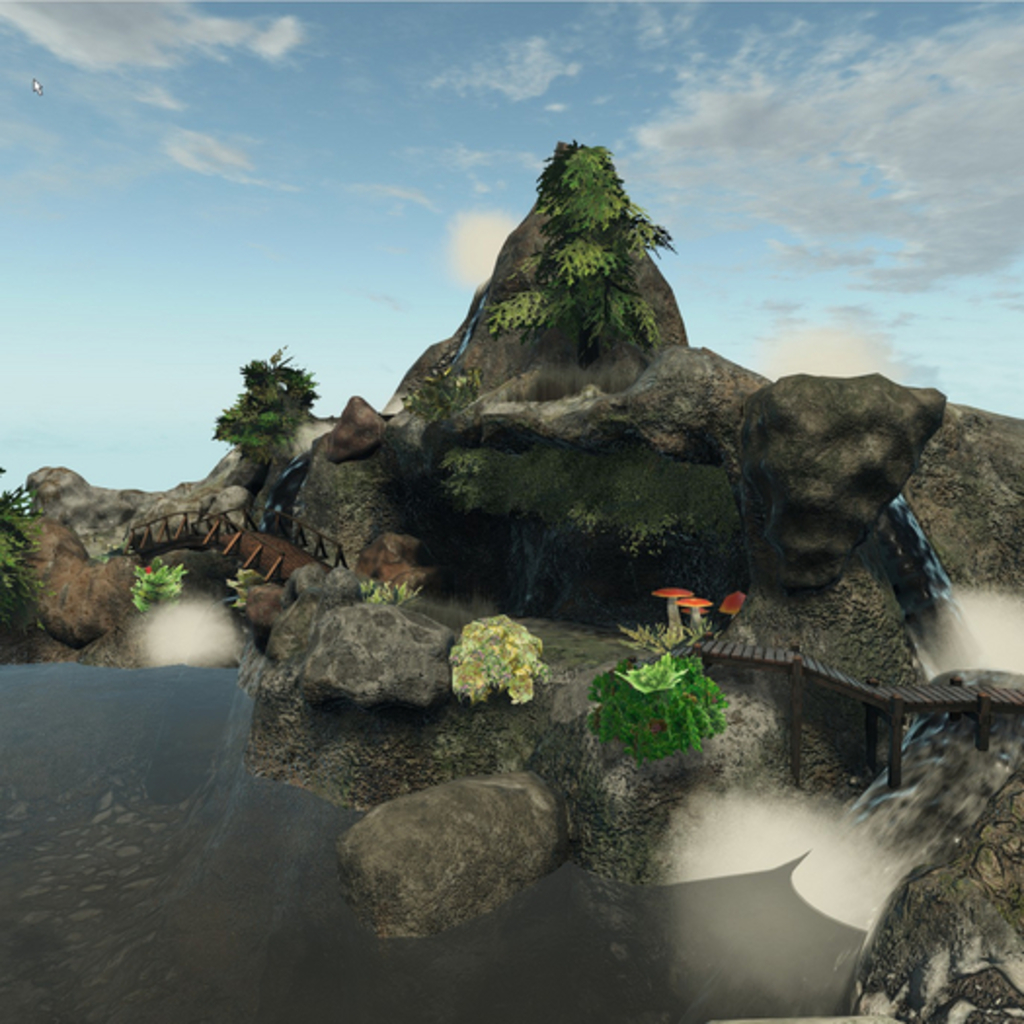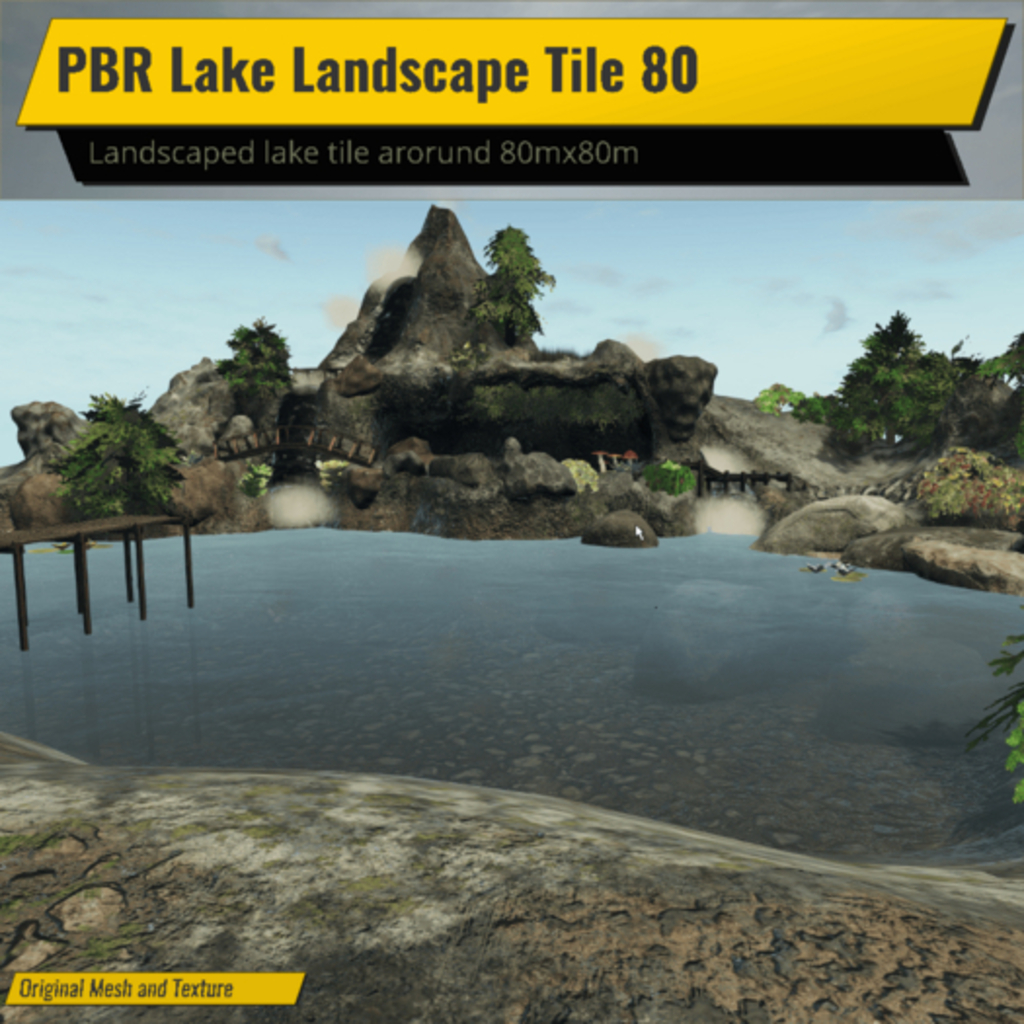 This is an almost completed landscape tile, you can use it on the ground and use sim water, or you can use it in the sky with the included water. Perfect for your landscape projects, landscape includes walkway, bridges, trees, brushes, lily pads, and more.