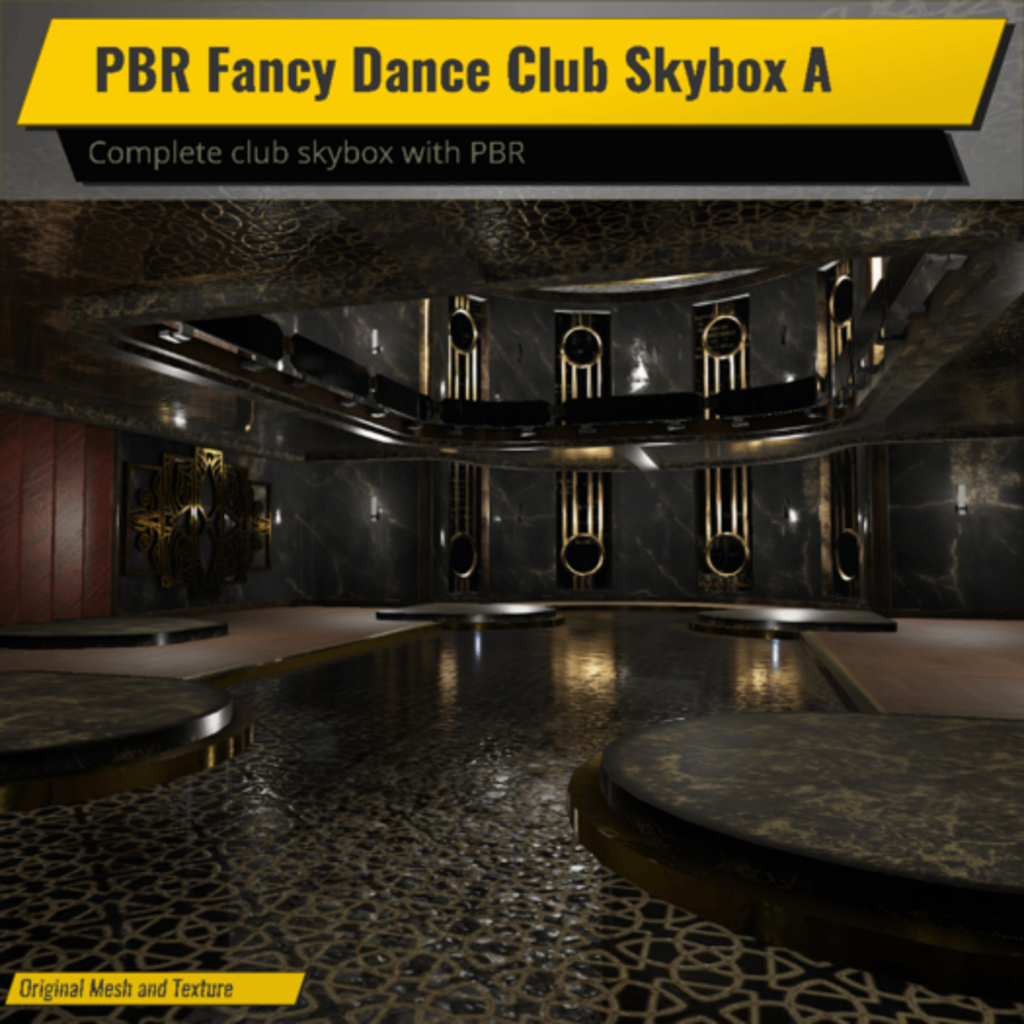A luxury dance club with PBR and legacy fallback textures for those who don't have PBR. Featuring a round 46x32m club area at 187 land impact, it's marble, gold, and glass will stand out.