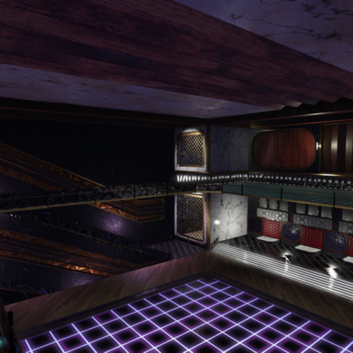 A three floor club. Designed to have a landing area on the first floor with 12 small shop units on the way walking up to the stairs to the main level.